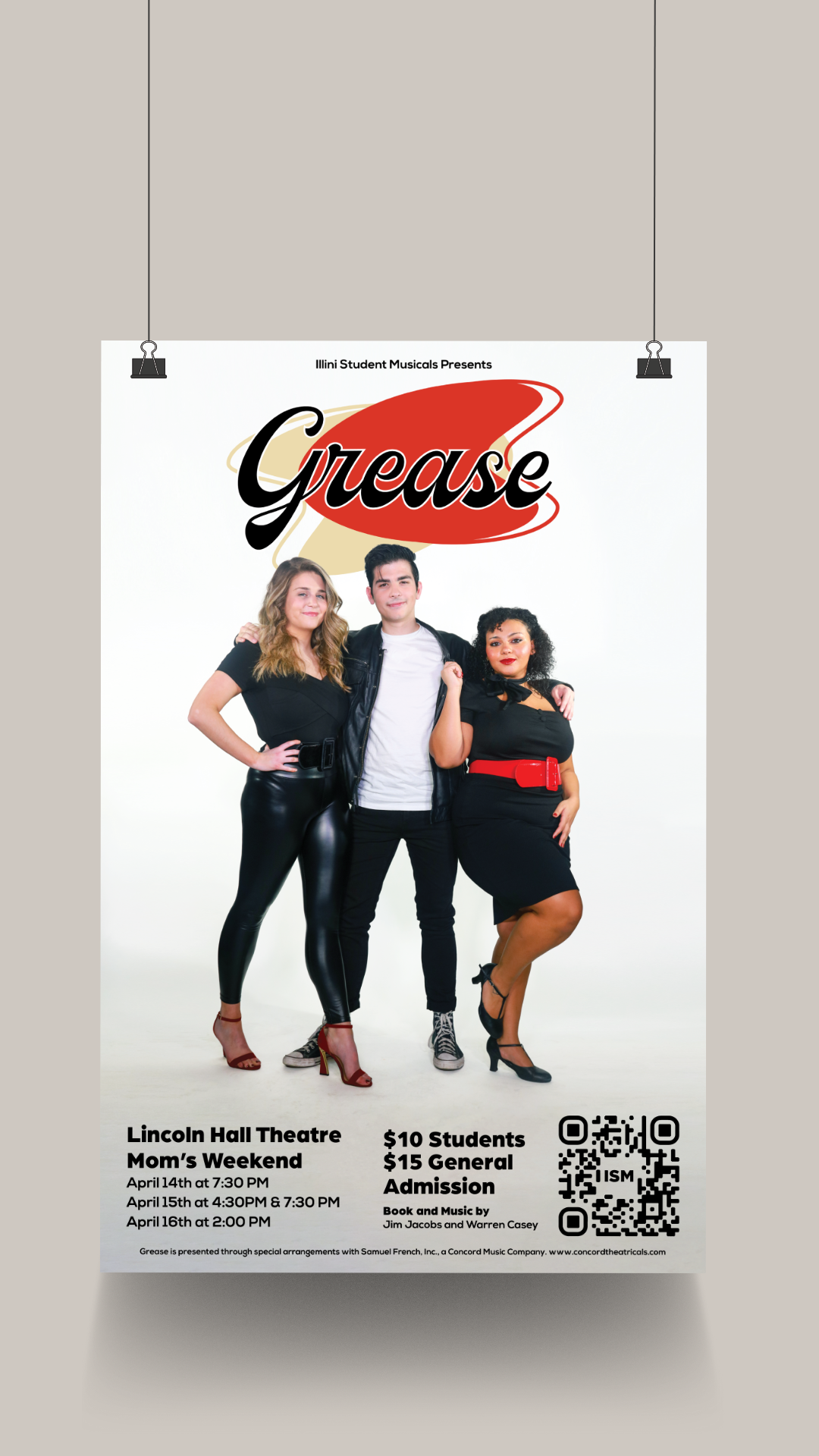 Coming back for my second semester as the Lead Graphic Designer for Illini Student Musicals, I was tasked to design the logo, craft social media content, and create the show poster for our Grease showcase.